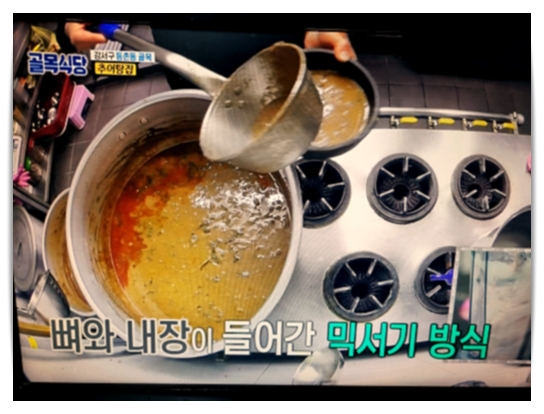 등촌동 추어탕집은 양념은 괜찮았지만, 추어함량이 적어 추어가 헤엄치고 간 맛이라고 했었는데, ㅋ 추어량을 늘리고 조리방식에 변화를 주자 국물이 아주 진해졌다고 백대표에게 칭찬을 받습니다.