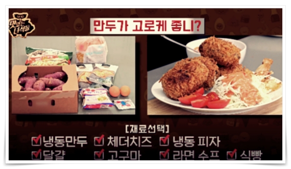 냉장고 속의 있는 재료를 고급 요리로 탈바꿈을 하게 되어 뚱남매들을 모두 감탄하게 했는데요. 메뉴를 살펴보면 만두 고로케와 만두피 튀김, 라면수프 케요네즈, 게살 수프 에그프레서, 내맘을 뭉게그라탱 순서로 요리를 했습니다.
