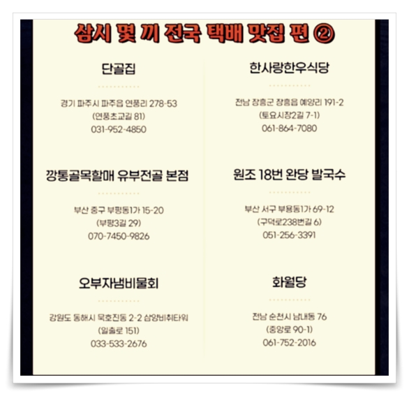 맛있는 녀석들 311회 전국택배 맛집 2편,2월5일