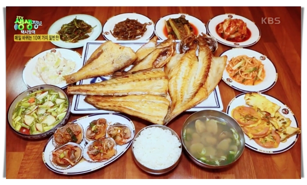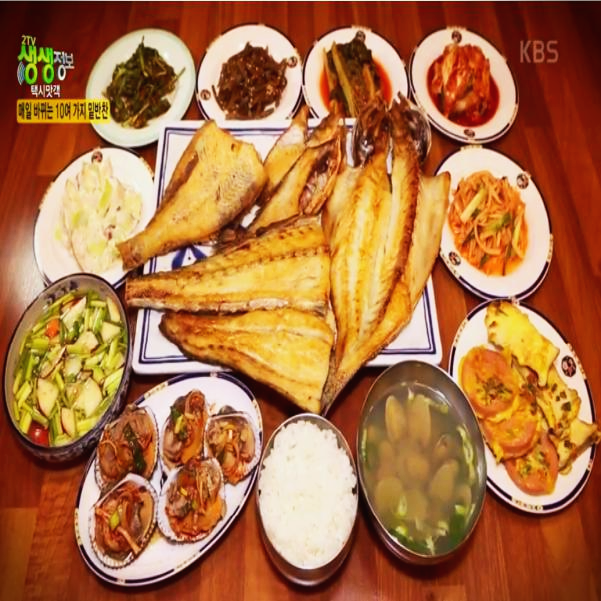 메인은 생선구이인데, 반찬종류도 십여가지나 된다고 합니다. 반찬도 매일 시장에서 공수해 온 싱싱한 재료로 만들기때문에 어머니 반찬으로 통할만큼 맛나고 이곳에서는 인기가 좋다고 합니다.