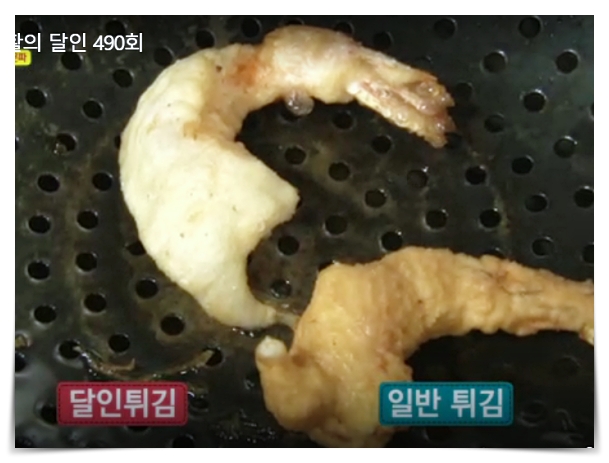 밀가루 튀김이 아니기때문에 색깔부터 다르다고 하네요.