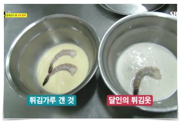 등갈비 요리와 새우튀김 요리가 방송에 나왔는데, 튀김 요리는 밀가루를 사용하지 않고 전분을 이용해서 튀겨준다고 합니다.