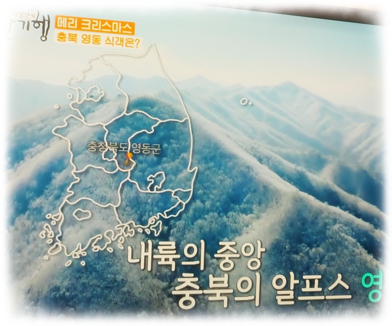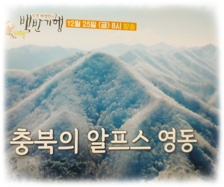 이상 우리나라의 중부 내륙지방이면서 겨울에 눈이 많이 내리는 백년기행 충북 영동 편(83회)을 마무리하려고 합니다. 앞으로 종종 각 지역별 방송에 나온 식당을 정리해서 포스팅을 하려고 합니다.