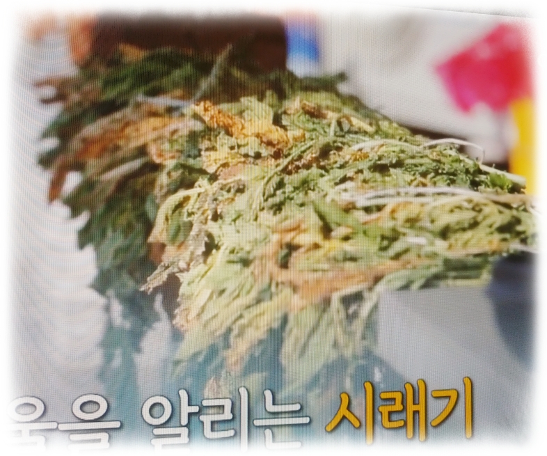 무 잎(무청)을 찬바람에 말리고 나서 가마솥에 삶은 시래기를 삶고, 냄새가 별로 안나는 청국장으로 맛나게 먹는 모습이 나옵니다.