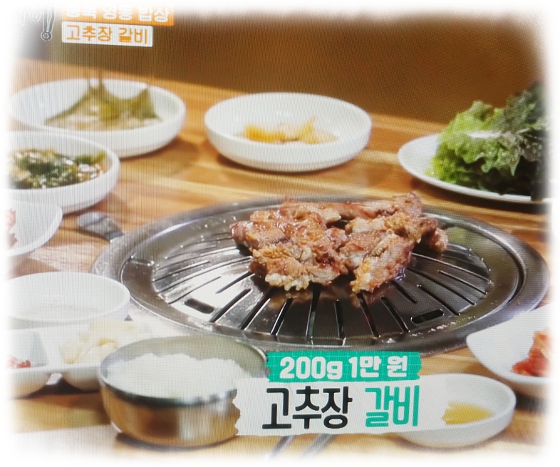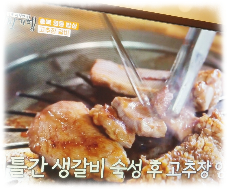 식객 허영만의 백반기행 영동 편에 나왔던 돼지갈비는 간장과 고추장으로 만든 갈비로 음식점 이름은 갑돌갈비입니다.메뉴명도 재미나게 지었는데, 고추장 갈비는 "갑돌 갈비" 간장갈비는 "갑순갈비"라고 합니다.